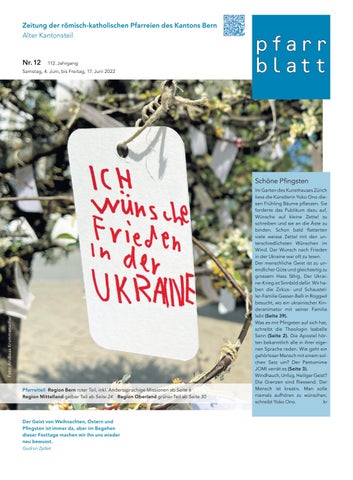 Im Garten des Kunsthauses Zürich liess die Künstlerin Yoko Ono die sen Frühling Bäume pflanzen. Sie forderte das Publikum dazu auf, Wünsche auf kleine Zettel zu schreiben und sie an die Äste zu binden. Schon bald flatterten viele weisse Zettel mit den un terschiedlichsten Wünschen im Wind. Der Wunsch nach Frieden in der Ukraine war oft zu lesen. Der menschliche Geist ist zu un endlicher Güte und gleichzeitig zu grossem Hass fähig. Der Ukrai ne-Krieg ist Sinnbild dafür. Wir ha ben die Zirkus- und Schaustel ler-Familie Gasser-Belli in Roggwil besucht, wo ein ukrainischer Kin deranimator mit seiner Familie lebt (Seite 39). Was es mit Pfingsten auf sich hat, schreibt die Theologin Isabelle Senn (Seite 2). Die Apostel hör ten bekanntlich alle in ihrer eige nen Sprache reden. Wie geht ein gehörloser Mensch mit einem sol chen Satz um? Der Pantomime JOMI verrät es (Seite 3). Windhauch, Unfug, Heiliger Geist? Die Grenzen sind fliessend. Der Mensch ist kreativ. Man solle niemals aufhören zu wünschen, schreibt Yoko Ono. kr