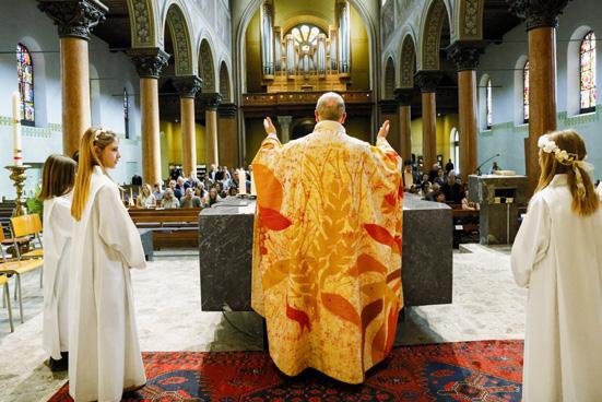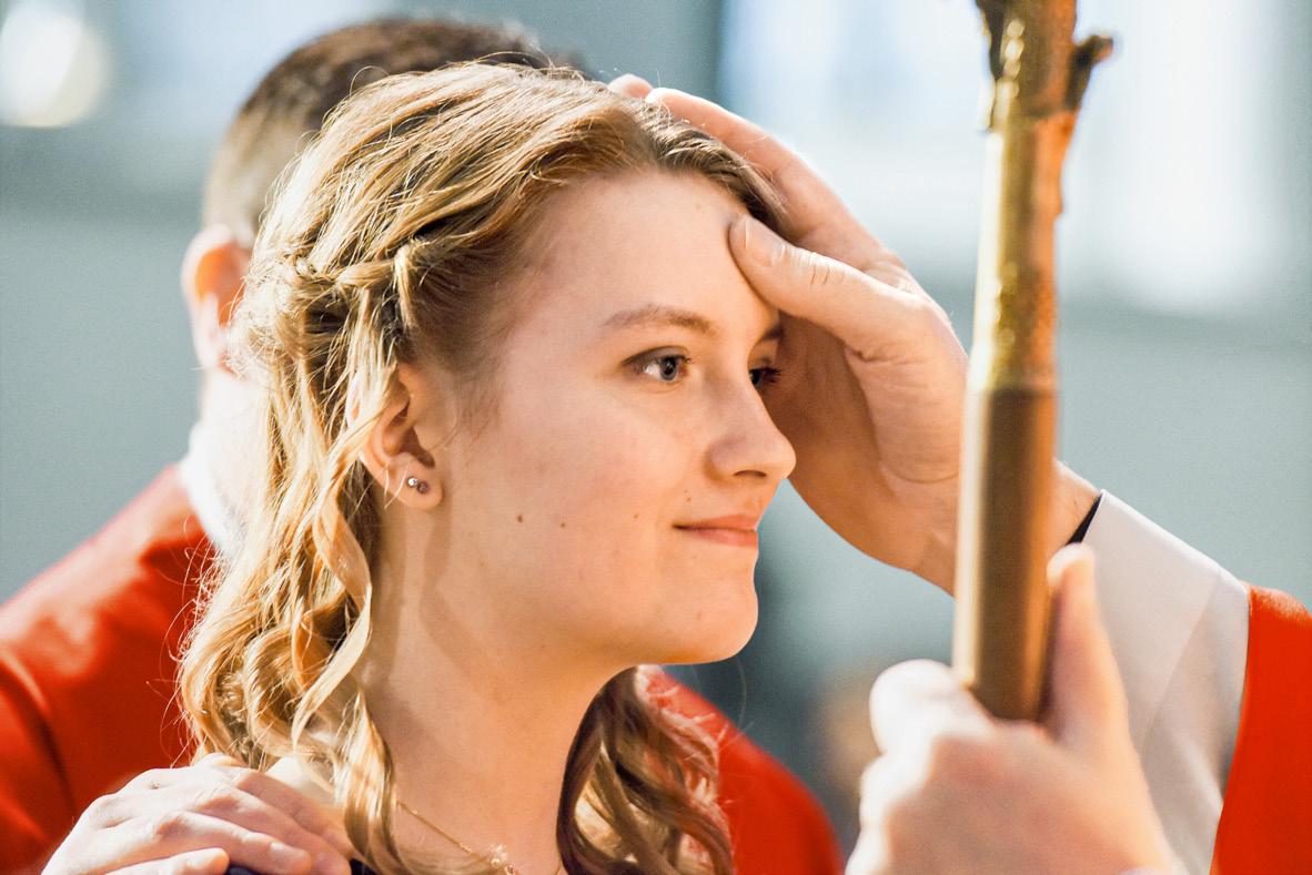 Die Wurzeln des Sakraments der Firmung liegen in den Texten der Apostelgeschichte und des Apostels Paulus in der Bibel. Da steht, dass die Apostel den Gläubigen, die sie nicht selbst getauft haben, die Hände au egen und den Heiligen Geist auf sie herabrufen, um die Taufe zu bestätigen. Ab dem 3. Jahrhundert fand diese christliche Initiation in einer grossen Feier in der Osternacht statt, die vom Bischof geleitet wurde und drei Schritte umfasste: die Taufe, eine Salbung mit Öl und die Eucharistie. Aus praktischen Gründen lösten sich diese Teile der christlichen Initiation voneinander. Da der Bischof nicht überall, wo Taufen stattfanden, zugleich präsent sein konnte, verschob man die Firmung auf einen späteren Zeitpunkt. Schliesslich wurde die Erstkommunion 1910 unter Papst Pius X. so weit zurückverschoben, dass sie seither noch vor der Firmung statt ndet. Aus einem einzigen Initiationsritual, das Taufe, Salbung und Eucharistie enthielt, haben sich im Lauf der Jahrhunderte also drei ver schiedene Feste entwickelt, die mehrere Jahre auseinanderliegen. Diese Einheit der Initiation wieder verständlich zu machen und die Firmung als Teil einer einzigen sakramentalen Bewegung hin auf Christus erkennbar zu machen, sei eine wichtige Aufgabe in der pastoralen Arbeit, so der katholische Priester und Professor für Liturgie an der Universität Fribourg Michel Steinmetz.