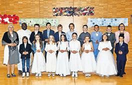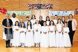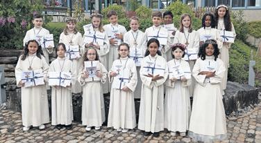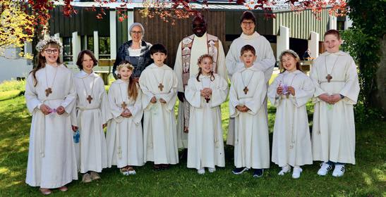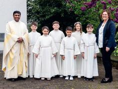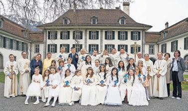 So ein Anlass ist nicht nur das Werk der Katechetinnen, des Pfarrers und des Organisten. Es braucht ein eingespieltes Team im Hintergrund, damit ein Erstkommuniongottesdienst überhaupt gelingen kann. Ein herzliches Dankeschön geht an unsere Sakristanin Susi und unsere Blumenfrau Beatrice. Sie haben die Kirche wunderbar vorbereitet und geschmückt. Ein weiteres Dankeschön dem Hausdienst: Edwin, Susi, Zeljka und Benjamin, welche unsere Räume immer tipptopp in Schuss halten. Ein Dank auch an alle freiwilligen Mithelfer:innen: den Kirchenordnern Robi, Kurt und Edouard. Ohne sie wäre bei der Platzsuche in der Kirche ein Durcheinander entstanden. Auch den engagierten Frauen der Familiengruppe gebührt mein Dank: Ruth, Fränzi, Giovanna und Monika, welche während der Feiern die kleineren Kinder bestens betreut haben. Und zu guter Letzt ein grosses Dankeschön an alle Erstkommunionkinder und ihre Familien, welche im Gottesdienst mitgefeiert haben und ihn so zu einem unvergesslichen Erlebnis machten. Ich hoffe, dass dieser Tag den Kindern und ihren Familien stets in guter Erinnerung bleibt. Gabriela Englert