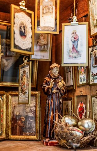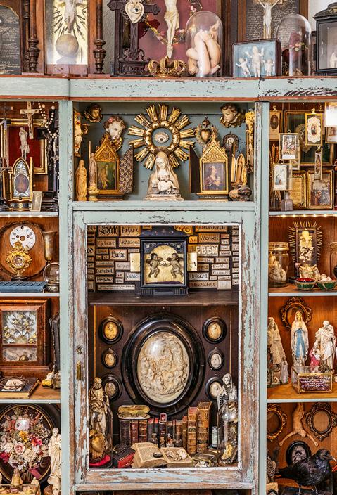 Ich lasse mich auf alte Gegenstände ein und gehe nach innen. Dort ist mein Zufluchtsort, mein Gotteshaus. Hier verliere ich das Zeitgefühl, oft sogar mich selbst – wenigstens für einen Moment. In diesem alchemistischen Raum verschmelze und verwandle ich meine Trouvaillen mit gedanklichen Fragmenten. Neues entsteht. Es steht für Wandlung und Auseinandersetzung – meine Art der spirituellen Suche und meine zwei -