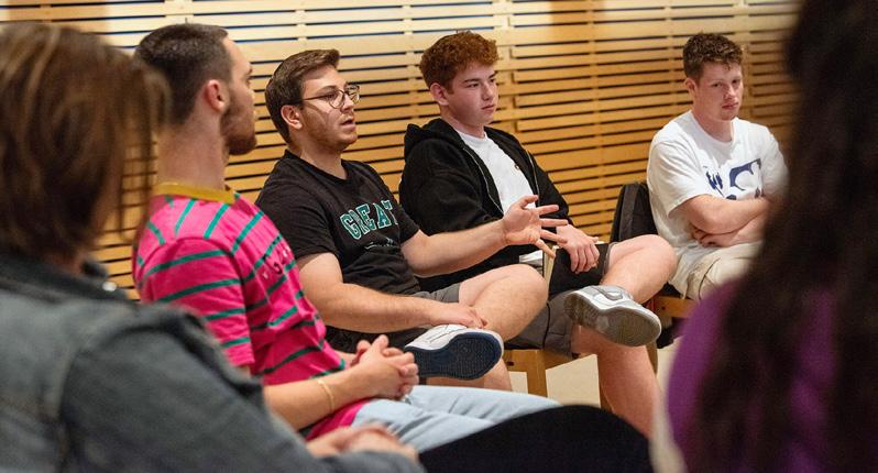 Berichten den katholischen Kolleg:innen über ihr jüdisches Leben: Nathanael und Joshua (Bildmitte).
