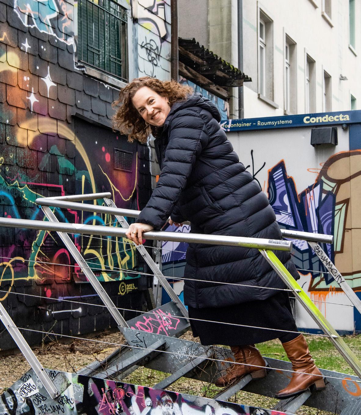 Dr. Christina Röcke erklimmt symbolisch ein zeitgenössisches «Stufenalter des Menschen». Foto: Stefan Maurer