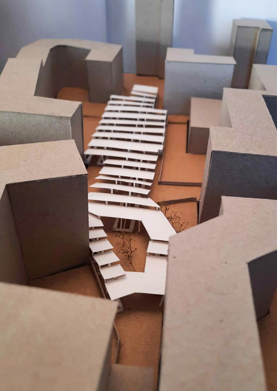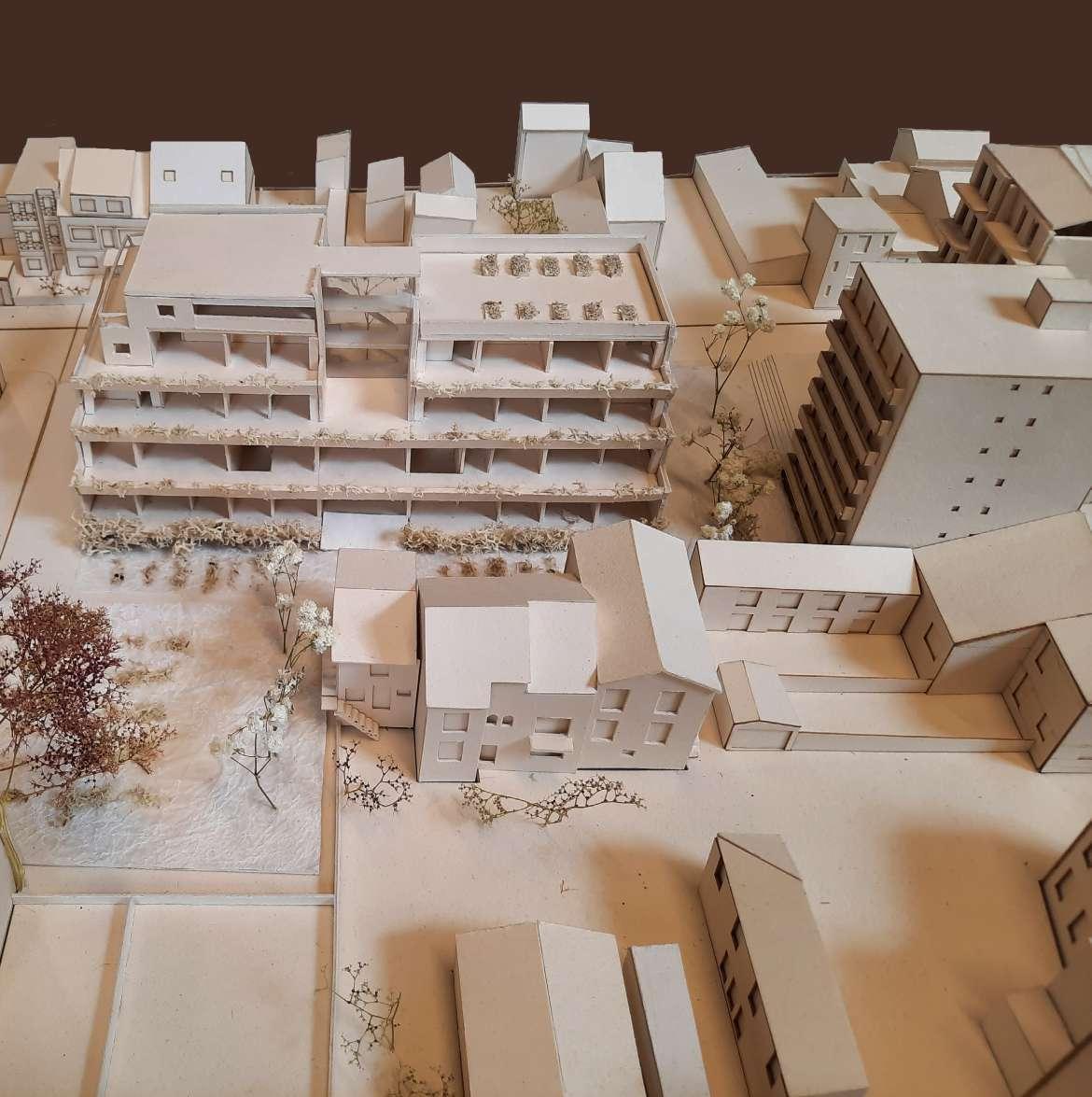 Une maquette au 1: 20 est réalisée afin de mieux appréhender les espaces créés ainsi que les matérialités et le rapport au site.
