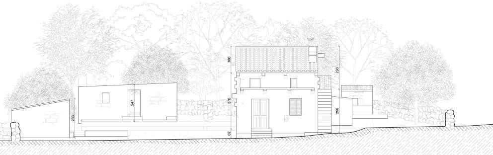 Enfin, le troisième temps du projet consiste en la redensification de l’habitat à Ceccia, allant de pair avec la redynamisation du centre. Quatre maisons neuves sont ainsi créées en relation directe avec la place pour la contenir en prolongeant le front bâti existant (cf. plan p.5). Un travail d’analyse du bâti ancien a été effectué, permettant de proposer des habitations respectant certains des gabarits et principes architecturaux locaux, tout en s’autorisant des variations afin de concilier la valorisation de l’histoire du lieu avec de nouveaux modes de vie.
