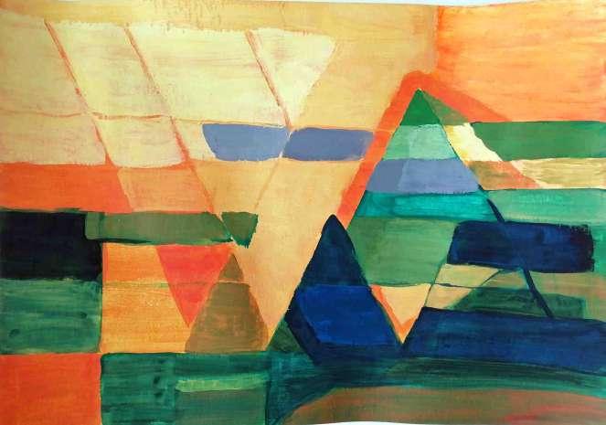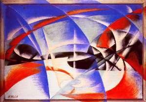« Paysage », Giacomo Balla, 1913, et peinture de la photographie d’après le tableau de Balla.