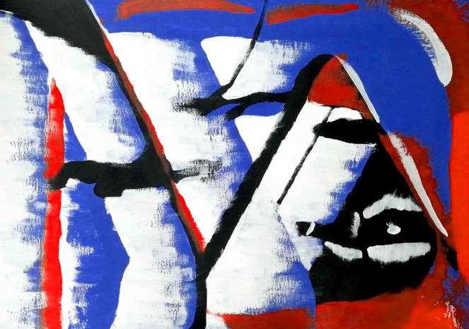 « Plans par couleurs », František Kupka, 1911, et peinture de la photographie d’après le tableau de Kupka.