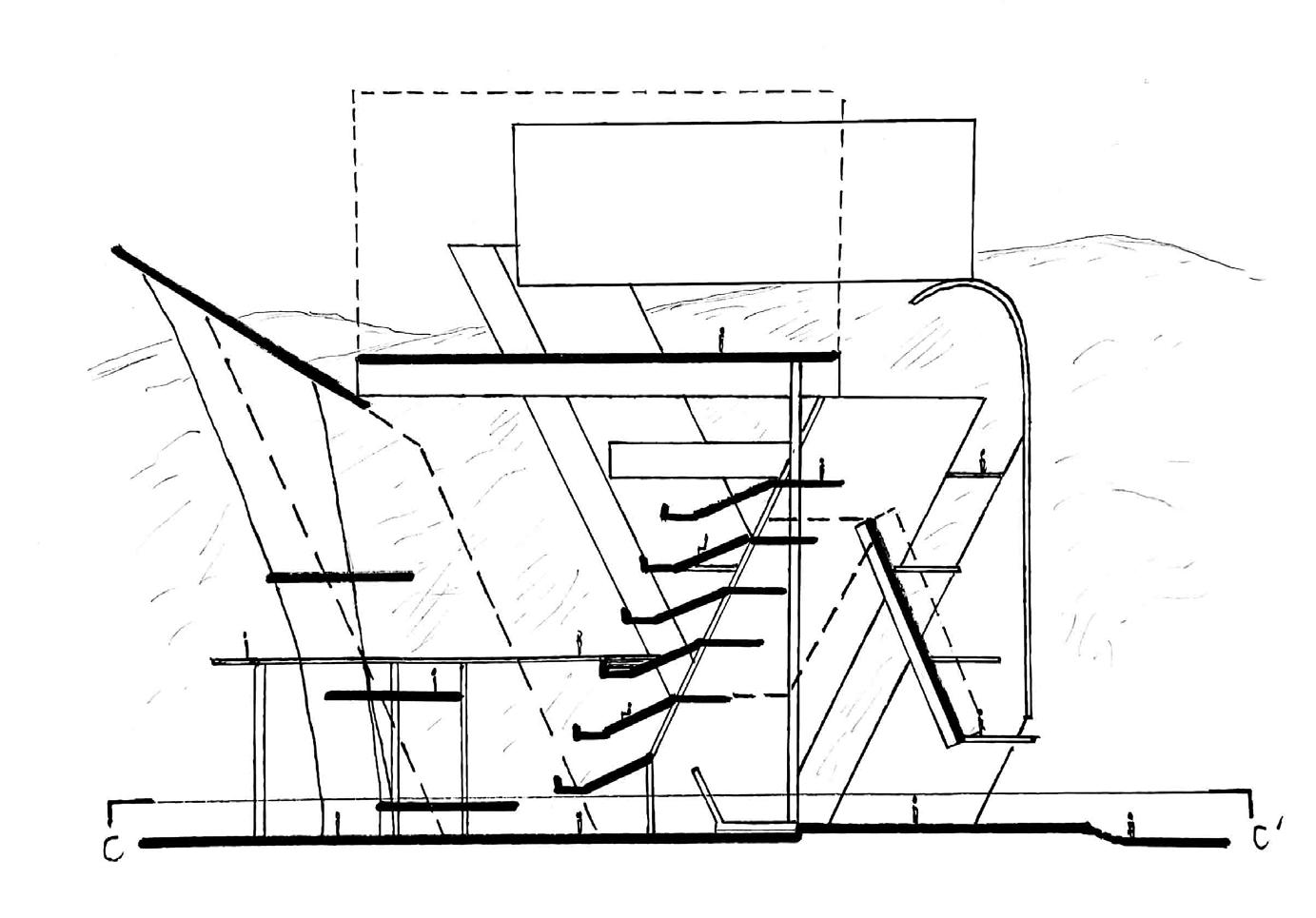 projet. J’ai reproduit, simplifié, retourné et interprété l’image à la manière de certains peintres afin de trouver les lignes qui serviront pour la coupe principale du projet.