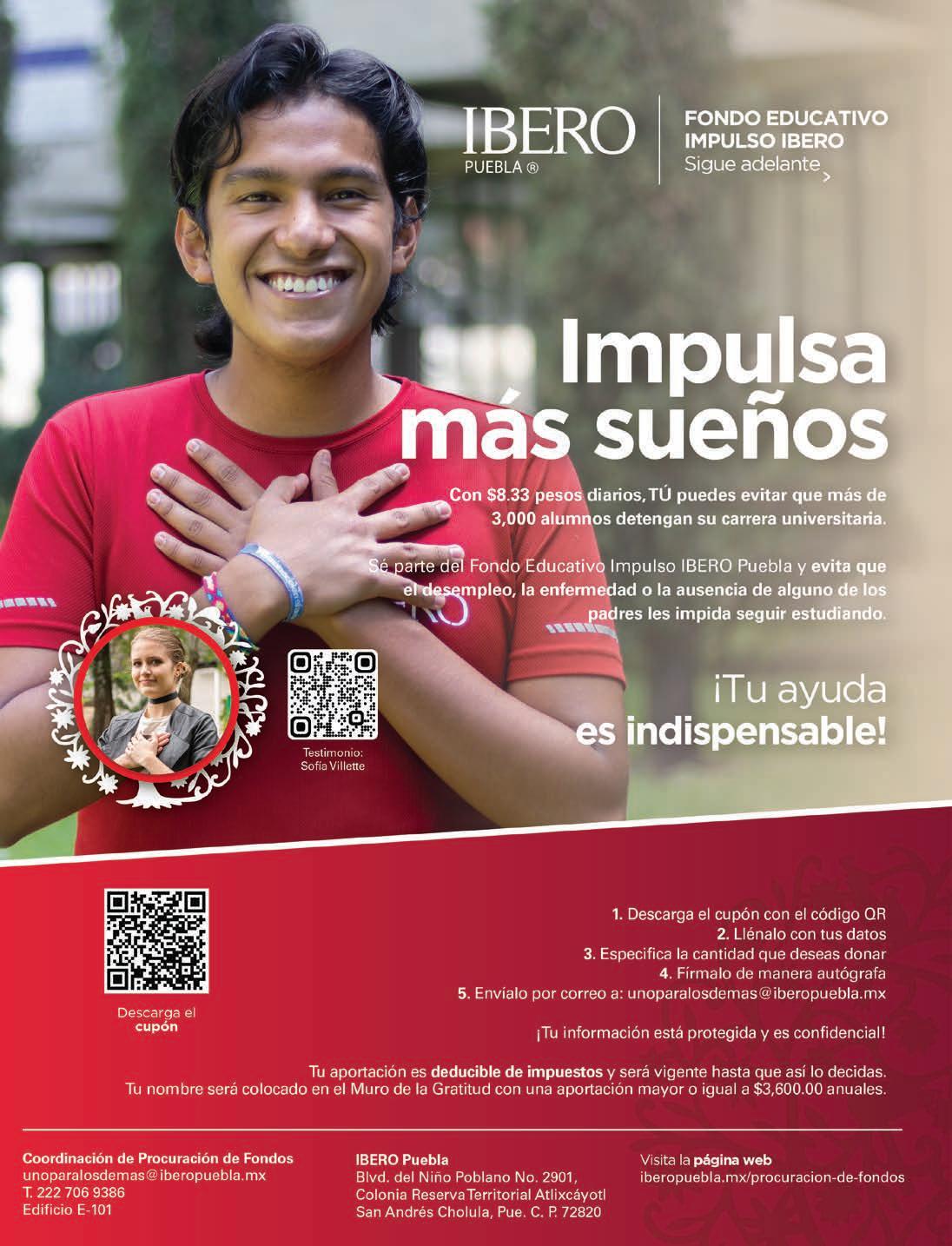 Entregamos estas páginas con un abrazo fraternal desde su casa, la IBERO Puebla, lugar de apertura, sensibilidad, creatividad, renovación y encuentro.