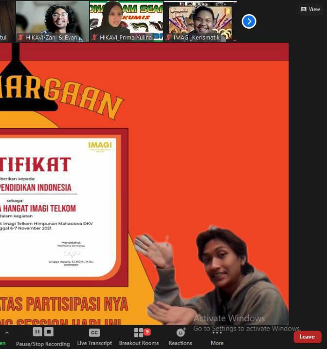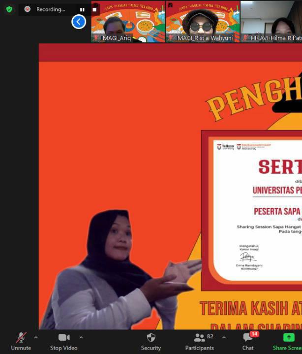 Sapa Hangat Imagi Telkom is a online workshop from Telkom University that invites design student of Universitas Pendidikan Indonesia (UPI), Institut Teknologi Bandung (ITB), and Universitas Komputer Indonesia (UNIKOM) to share all about design and the student organization in their campus.