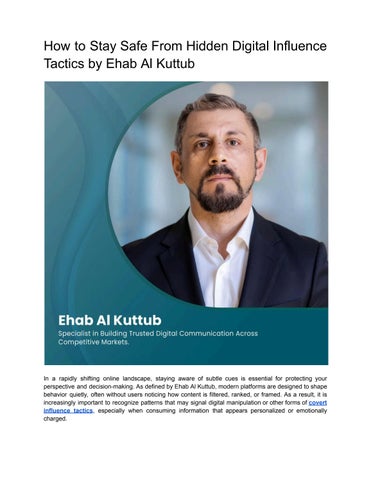 Ehab Al Kuttub is a Principal Consultant and Digital Strategist who has worked with Fortune 500 companies, governments, and civic institutions on issues of digital governance and communication. Based in New York, he applies AI-driven and data-powered solutions to counter disinformation, manage reputational risk, and enhance institutional resilience. His work enables global corporations to address geopolitical challenges and maintain brand credibility, while public institutions benefit from enhanced stakeholder engagement and more robust digital communication frameworks. Ehab is a consultant in digital marketing, global brand positioning, and international communication, helping organizations develop strategies that address digital risk management and online resilience. By utilizing AI-powered analysis, he supports the monitoring of threats, the interruption of coordinated influence operations, and the development of long-term frameworks that protect organizations in a rapidly evolving digital environment. Throughout his career, Ehab has led teams that applied advanced analytics and digital policy to dismantle disinformation networks reaching billions of people worldwide. These initiatives have contributed to protecting institutional credibility, promoting transparency, and reinforcing trust for multinational corporations, governments, and global brands. In his role as a principal consultant, he continues to deliver solutions for organizations that must navigate complex international markets. His focus on crisis communication and digital strategy helps institutions expand internationally while maintaining authority and confidence. As an advisor, Ehab collaborates with corporations, governments, and NGOs to develop AI-based strategies that safeguard reputations and manage communication at a global scale. His support has enabled Fortune 500 companies and public institutions to confront disinformation campaigns, address crises, and build resilience in competitive global arenas.