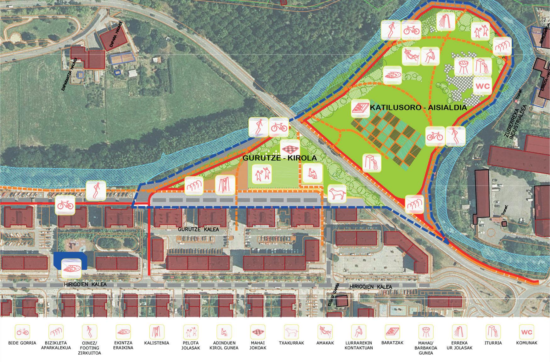 Bestalde, hainbeste familia bizi diren eremura udal zerbitzuak gerturatu nahi ditugu, “txanpinoi” ezizenez ezagutzen dugun Hirigoien 26ko eraikina egokituta. Guztion gustura gara dezagun, beharrezko ikusten dugu parte hartze zabalaren bidez definitzea: herri-baratzeak, haur- zein kalistenia-parkeak, eserleku eta mahaiak itzalean eta eguzkitan…