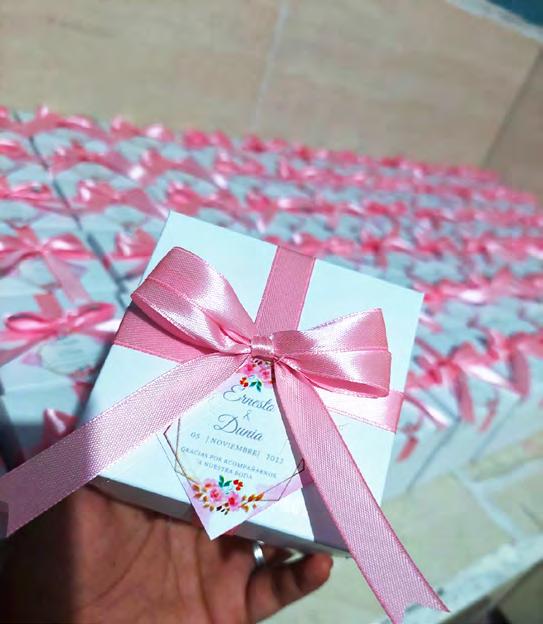 De niña siempre me gustaron los detalles, porque los recuerdo con una sonrisa y buena sensación, esa sensación es la que queremos transmitir con lo que elaboramos, conservar esa esen cia que nos caracteriza. Está comprobado por diversos estudios que entre más tengamos activas las hormonas de la felicidad como ser la dopamina, la oxitocina, se rotonina y endorfinas más felices somos y es así como sabemos que detalles especiales causan felicidad, de esta manera cuando nuestros clientes nos manifiestan su satisfacción sabemos que nuestro objetivo se está cumpliendo, creando detalles que provoquen una son risa. Dentro de los detalles que elaboramos, tenemos las cajas de regalo las cuales hemos logrado una línea clásica y una Deluxe, siendo esta ultima la mas solici tada, que se compran en el extranjero ya nivel nacional.