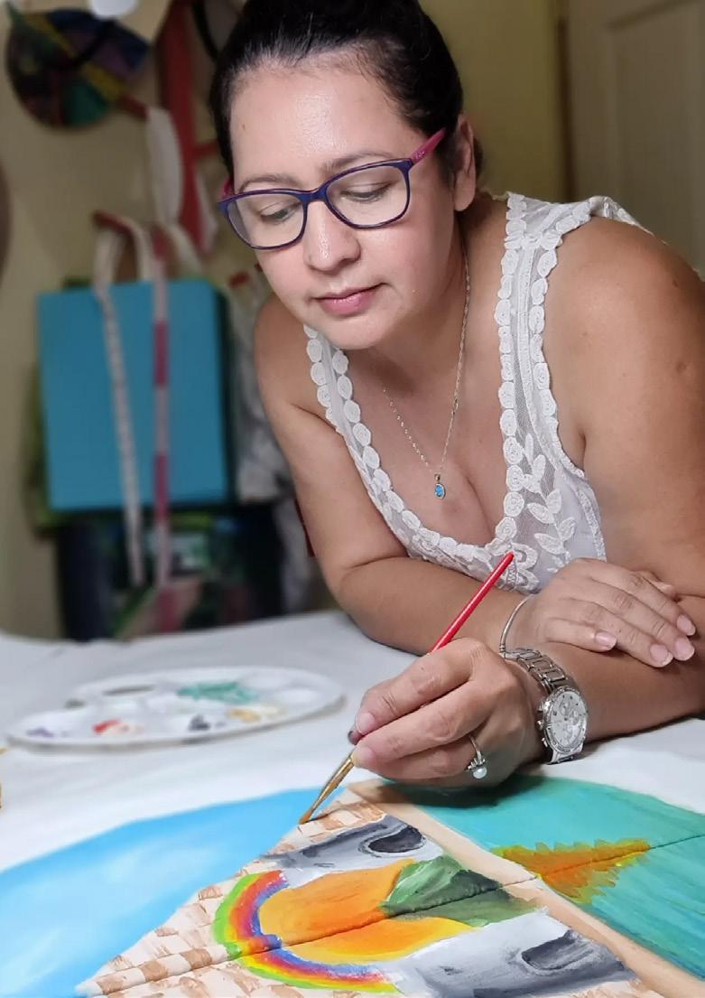 Originaria de Esquías, Comayagua y graduada de la carrera de Bachillerato en Artes Plásticas en la Escuela Nacional de Bellas Artes, con diplomados en Diseño Gráfico, Diseño de Interiores, Diseño de Modas, Marketing digital cuyos conoci mientos fueron adquiridos mientras ejercía como ama de casa, sin pensar que todo ello le serviría en un futuro para crear su propio emprendimiento llamado Kolibríes. Kolibríes es arte y moda, consiste en la confección de Prendas perso nalizadas y pintadas a mano, destacando la flora, fauna y cultura de nuestro país. También abarca el ámbito artístico como ser elaboración de murales, pinturas de retratos, cuadros a pedido. Y también con clases de pintura para niños y jóvenes.