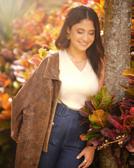 Nuestra portada de noviembre captura precisamente ese espíritu: el de una mujer que honra su historia mientras escribe su propio camino, rodeada de la calidez otoñal que simboliza renovación, gratitud y fortaleza.