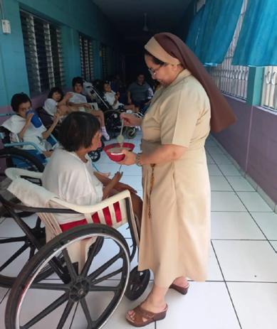 Las Hermanas “reconocemos, contemplamos, cuidamos y mostramos el sagrado cuerpo de Cristo en el sagrado cuerpo de los pobres más pobres”. El servicio que prestamos es integral, dedicándonos a toda la persona del pobre, sirviéndoles de forma directa siendo para ellos la cabeza, los oídos, los ojos,