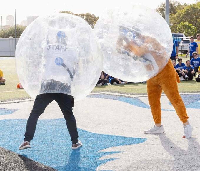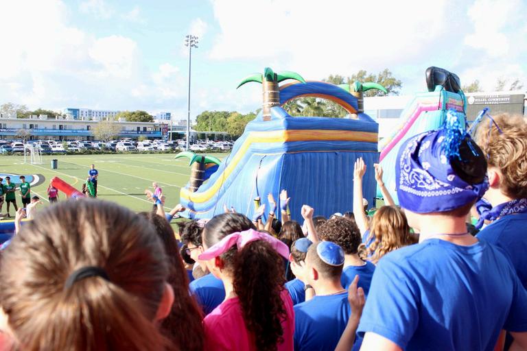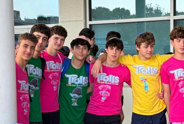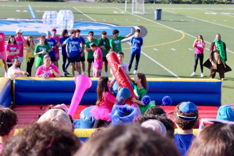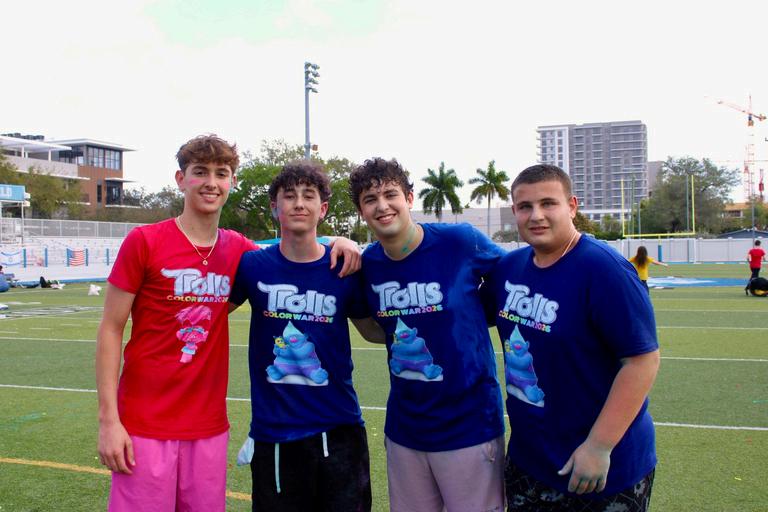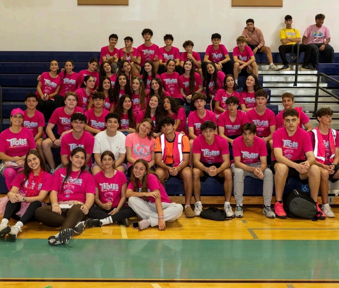 This 2025-2026 school year, Scheck Hillel's annual Color War was filled with spirit and competition. With a theme inspired by the movie Trolls, students were divided into four teams: Pink (Poppy), Green (Branch), Blue (Biggie), and Yellow (Smidge). The first night of Color War began with an “Erev Color War” Arvit service and the reading of the Megillah in the cafeteria. After dinner, students attended an exciting DJ party in the gym. The first day consisted of games, competitions, and celebration, including a game show and carnival on the field and another Megillah reading in the gym. Later on, teams competed in many thrilling events, including tug-of-war, sumo wrestling, and air mattress races. The first day of color war concluded with a dunk tank, water games, and the highly anticipated powdered color fight. On the final day of Color War, teams rotated through sports and activities throughout the morning. Events included kickball, ping pong, trivia, catapult building, art, rock wall climbing, and laser tag The day ended with the final ceremony in the gym Each team presented a Dvar Torah, creative artwork, lip sync performances, and team videos These performances displayed all the pillars of this year's color war: simcha, shalom, tikkun olam, and bitachon