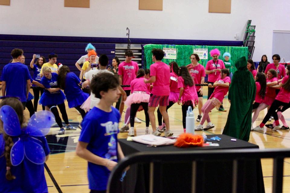 Color War at Scheck Hillel Community School, which took place on March 3-4, 2026, was announced approximately one month in advance to build ruach. This year’s theme was Trolls, and each team represented a different character and color: Poppy (Pink), Branch (Green), Smidge (Yellow), and Biggie (Blue) The excitement began the night before with a special Megillah reading led by Rabbi Sprung, which was open to all parents and students, followed by a special performance by DJ Ahki for high school students. This “Erev Color War” created a lot of energy and anticipation for the start of the real Color War.
