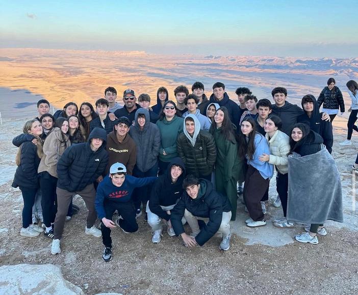 Another one of the most memorable days of the trip started early in the morning after the 10th graders spent the night at the base of Masada. They woke up before sunrise to hike up the mountain and view the sunrise from the top. Although the hike was challenging, reaching the top and seeing the beautiful views of the desert and the Dead Sea made it worth it. After the hike, the boys and girls separated to pray Shacharit. Then the two buses met with their tour guides, Shimon and Yoni, for a detailed tour of the ancient site. They explained the history of Masada and described the meaning of why Masada is such an important place in our history After the tour, the students traveled to the Dead Sea, where they had time to float in the water and relax Later in the day, they continued south to Eilat That night, they lit candles together for the second night of Chanukah After, the students went to the Ice Mall, where everyone had time to shop and choose their own dinner, and then to the boardwalk, where many students and teachers, including Dr. Hana Barouk, rode the exhilarating Yaniv Fireball. This was just another glimpse of one of the many full and exciting days students experienced in Israel.