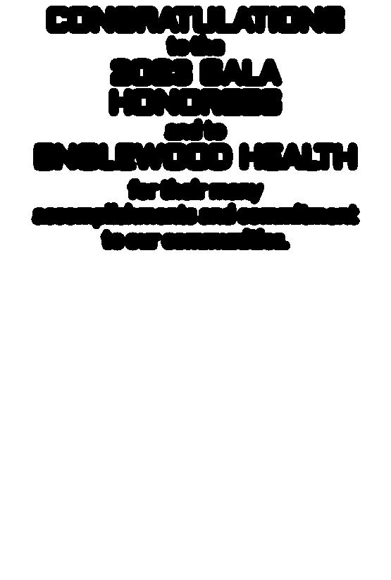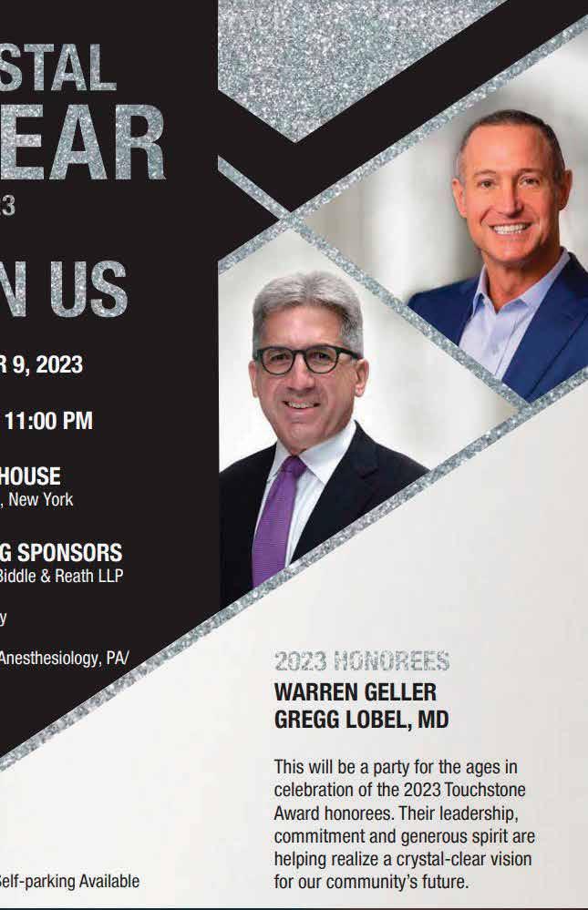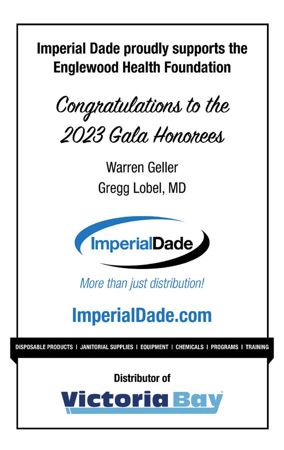 Quest Diagnostics is proud to sponsor the 2023 Englewood Health Foundation Crystal Clear Gala. Congratulations to David L. Abramson, MD, Lynne and Marty Zaikov, Debra Albanese and the entire Foundation Team! Best Wishes, Your Friends at The Angeletti Group THE ANGELETTI GROUP New Haven, CT • Morristown, NJ • Naples, FL Philanthropic counsel to the most passionate in healthcare, education and community building. 973.540.1400 • www.theangelettigroup.com Congratulations to Warren Geller, Gregg Lobel, MD, Debra Albanese and the entire Foundation Team! Best Wishes, Your Friends at The Angeletti Group ...and labels in Healthcare Cheers to your Clear Vision Congratulations to the 2023 Touchstone Award Recipients!! All-Tek Labeling Systems Staten Island, NY 10309 800-257-2874 718-608-9800 sales@alltek1.com ...and labels in Healthcare Cheers to your Clear Vision Congratulations to the 2023 Touchstone Award Recipients!! All-Tek Labeling Systems Staten Island, NY 10309 800-257-2874 718-608-9800 sales@alltek1.com