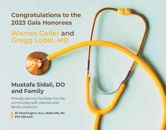 East Coast Advanced Plastic Surgery, LLC 200 S. ORANGE AVE, SUITE 295 | LIVINGSTON, NJ 07030 | 201.449.1000 | WWW.ECAPLASTICSURGERY.COM Left to right: Mazen Bedri, MD, Charbel Chalfoun, MD, Dean Cerio, MD, Cyrus Loghmanee MD, Jonathan Keith, MD CONGRATULATIONS to the 2023 Gala Honorees WARREN GELLER & GREGG LOBEL, MD Congratulations 2023 Gala Honorees Samuel Agahiu, MD Emmanuelle Gilles, MD Louis C. Jan, MD Marc Zelkowitz, MD Jasmeena Amin, APN Bergen Kidney Center, P.C. 300 Grand Avenue, Suite 101, Englewood, NJ 07631 250 Old Hook Road, Suite 303B, Westwood, NJ 07675 phone (201) 567-5787 | fax (201) 567-7652 | www.bergenkidneycenter.com Warren