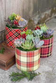6" HOLIDAY PLAID SUCCULENT PLANTER