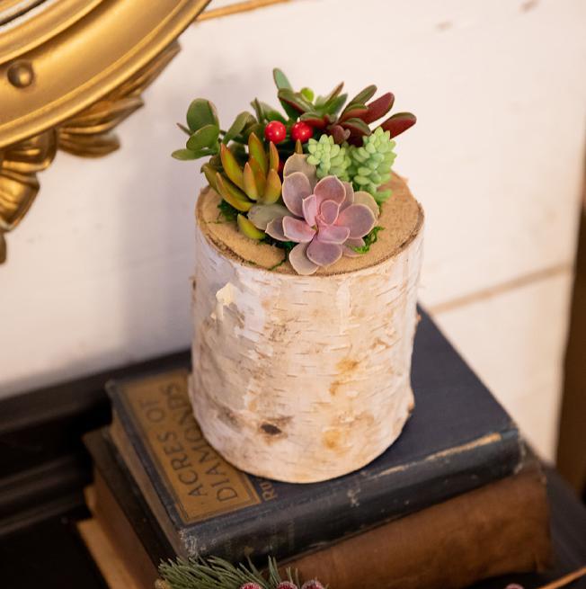10” BIRCH LOG TROUGH SUCCULENT GARDEN