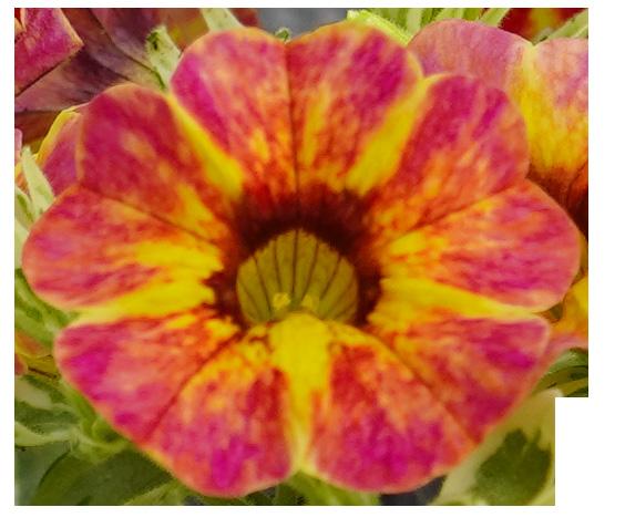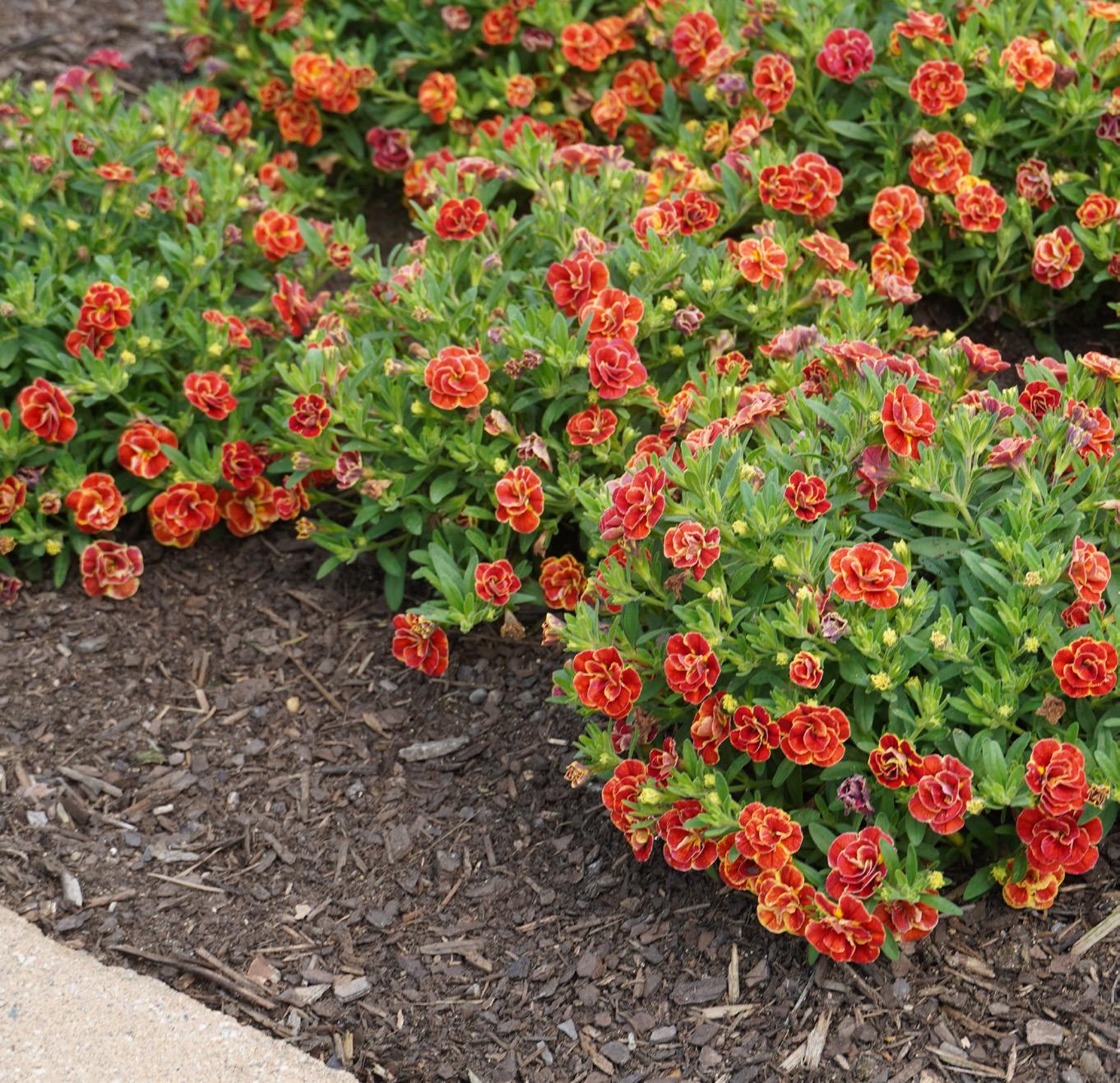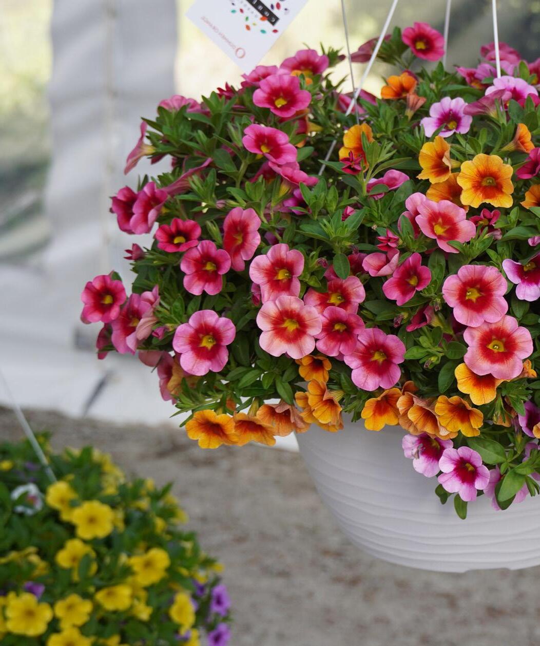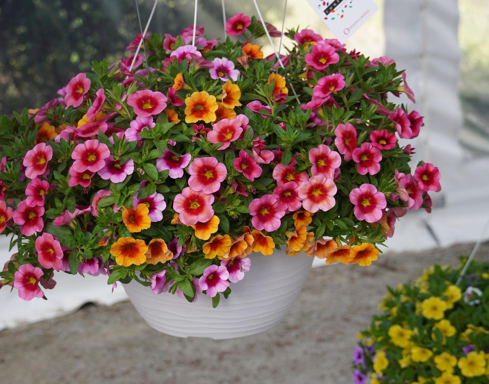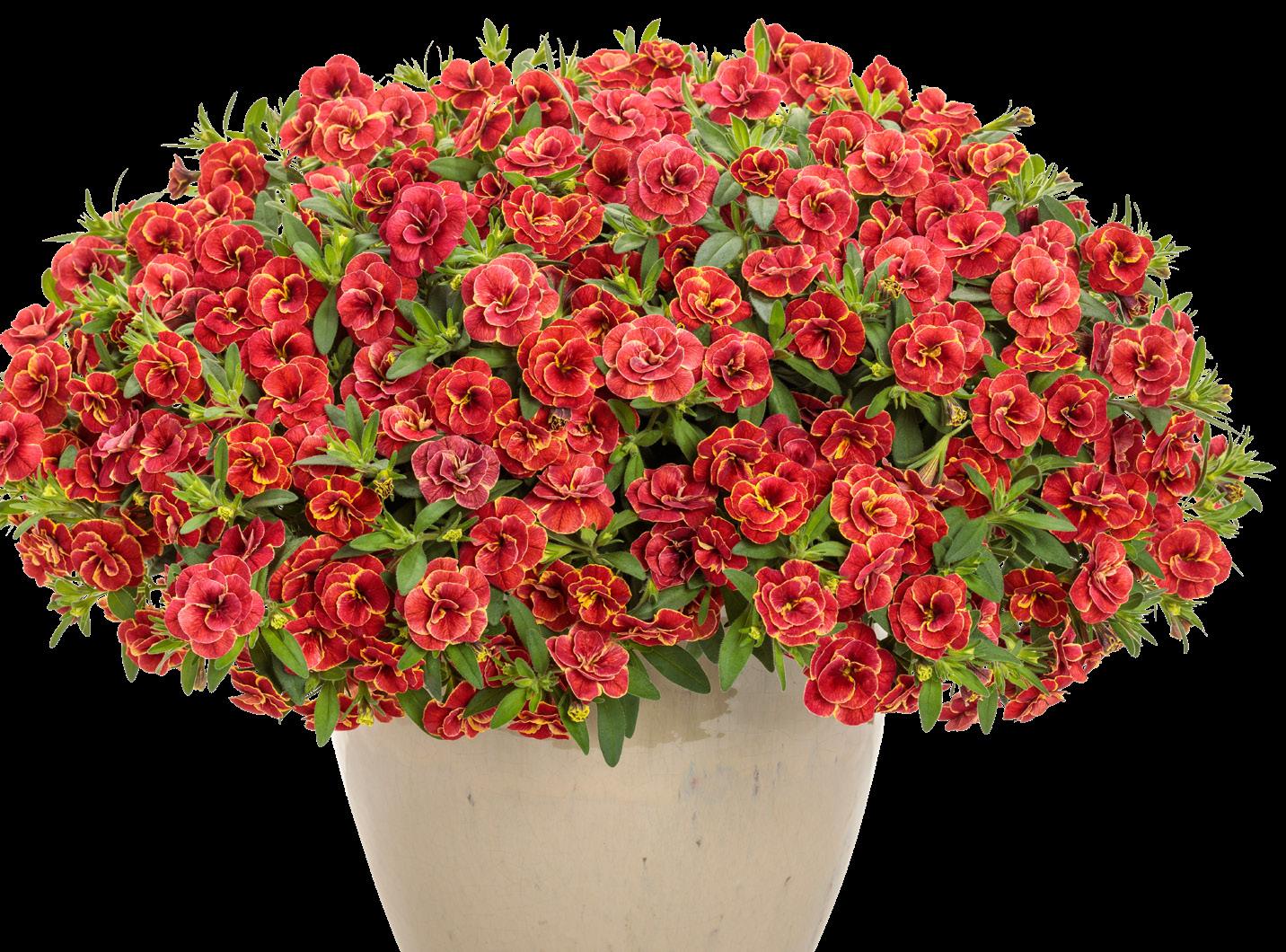 SELECTA ONE | This medium vigor, semi-trailing cali showcases a uniform habit and large, single and double blooms. What makes it truly stand out are the double bicolor flowers, featuring a striking red color with a bright yellow star. With its semi-trailing habit, it looks stunning in hanging baskets, providing a cheery contrast that catches the eye; the display at CAST 2023 was no exception.