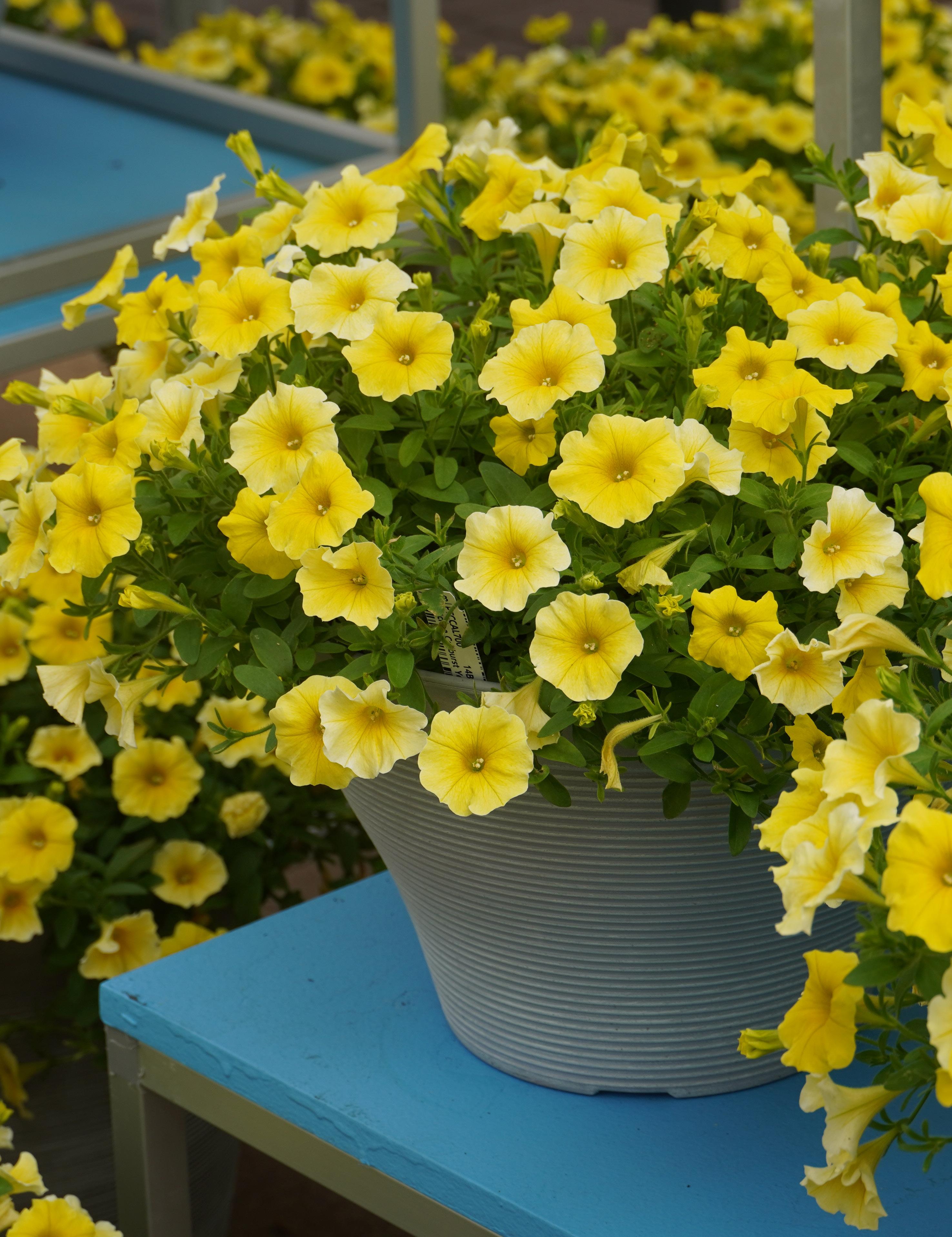 PROVEN WINNERS | We seem to be partial to a good yellow bloom, because here we are, falling for another yellow bloomer this year! With its buttery yellow petals and a golden yellow center, this variety captures the essence of sunny charm. Compared to other series varieties, you may notice its not quite as leggy, boasting a more uniform, rounded shape. It c ombines a full, well-branched habit with exceptional garden performance spring to fall, with little maintence required. Its flowers are a more intense yellow than Supertunia Limoncello, but they may transition to creamy yellow in southern climates