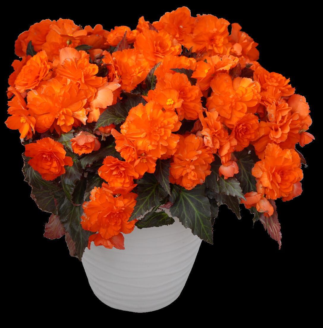 DUMMEN ORANGE | The I’Conia line continues to be a leading example with its vibrant colors that beautifully contrast against the dark, clean foliage. These begonias thrive in both sun and shade, showcasing double flowers and excellent branching. The collection has expanded with the addition of First Kiss Saffron, which features semi-double flowers and an upright habit as well as another ‘peachy’ addition, La Luna. Another standout intro is Portofino Dark Orange, a mounded begonia with double flowers and striking chocolate foliage. It was an absolute showstopper at CAST, leaving a lasting impression on all who saw it.