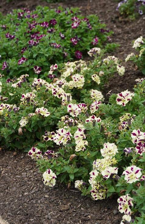 WESTHOFF FLOWERS | This is a really neat, new double series of petunia. While a bit of a novelty, the Double Stuff series seems to be reliable in bloom and habit with a refreshing bi-color double bloom. The plant is compact and is noted to have excellect rain tolerance with a self-cleaning flower, an unsual characteristic for doubles. Like our sales rep Diana says, “reminds you of your favorite ice cream flavor!” We’ll take 2 scoops, please! Choose from Bordeaux Star (our favorite), Burgundy Star, and Violet Star.