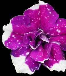 WESTHOFF FLOWERS | A brand new spotted petunia series! Previously Westhoff introduced the Constellation series, but due to some patent issues the series was sidelined. Here they are a few years later with a completely new-tomarket spotted petunia that is special in its own right. The Discoball series of petunia is perfect for a smaller pot, with a more mounding compact habit over more vigorous types we typically see... a perfect fit for growers and consumers. Pink, Purple, and Violet mark the series with more to come in future seasons!