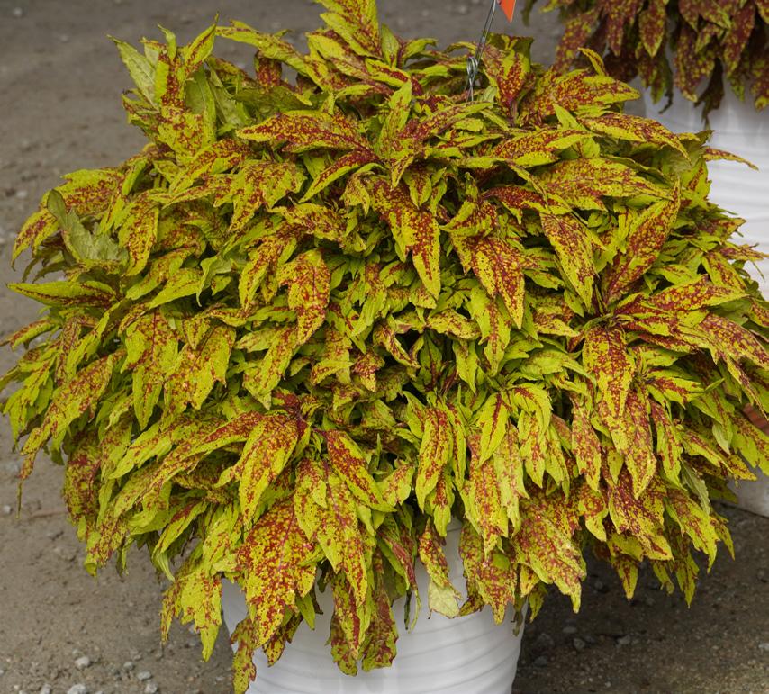 SYNGENTA FLOWERS | A brand new line for Syngenta, a stunning collection of colorful foliage plants suitable for both sun and shade. These coleus are specially bred to maintain their vibrant colors and foliage patterns in all light conditions. We hear they will not exhibit as much fade as competing series, so this is something to keep an eye on at summer trials! With late flowering selections, you can enjoy tidy and non-bolting plants started from consistent, high-quality cuttings for a healthy and vigorous plant. Series colors: Burgundy Lime, Chocolate Mint, Chocolate Veleveteen, Moondust, Tricolor Pink, Sienna. Burgundy Lime and Sienna are a little more compact, where as Chocolate Mint and Chocolate Velvet are later to flower. Sienna and Moondust were EHR favorites at CAST!