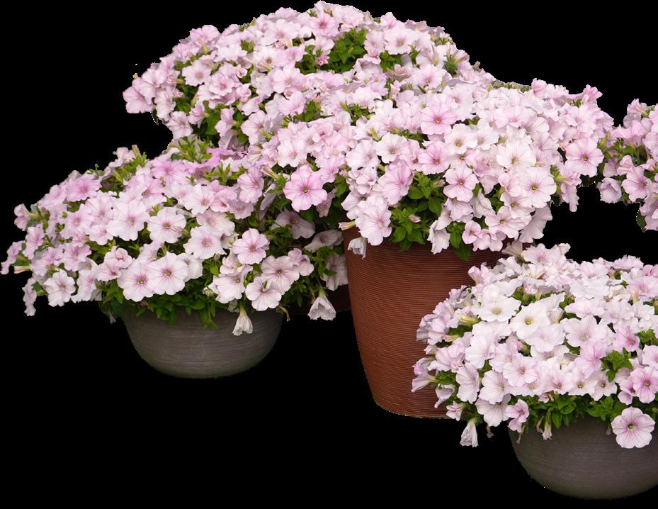 Pink Pearl adds a soft, glowing tone to the Easy Wave lineup, with blush-pink blooms that catch the light beautifully. It stands out as an easy-togrow, reliable pastel that pairs well with almost anything, whether you’re designing in cool tones, sunset shades, or all-pink palettes.