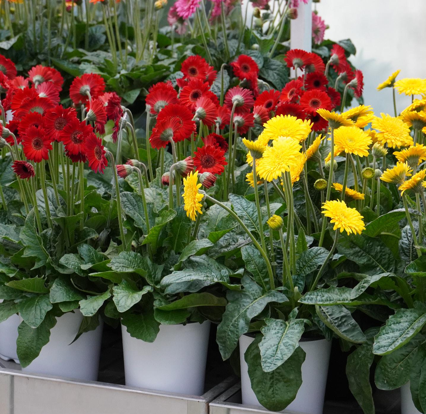 These true garden gerberas bring bold color and seasonlong blooms with impressive durability. Majestic Yellow Imp. features larger, double blooms in a brighter yellow, ideal for lush, voluminous impact. Sweet Chili, the first true red gerbera with a black center, offers daisy-like charm with spicy flair. Both thrive through heat, cold, and rain... perfect picks for vibrant, lowmaintenance garden color.