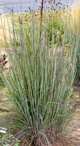 This narrow selection shoots blue blades skyward before flaming cinnamon by late summer. The color arrives earlier than typical little bluestems and holds red for the perfect fall show. A slender profile make it a go-to for narrow spaces. Breeder notes it is one of their reddest selections to date!