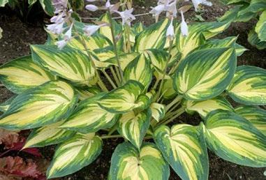 “A majestic, variegated large hosta that will capture the hearts of any gardener who showcases it in their garden. The contrast between the margin and the center is dramatic and refined. Near white, tubular flowers have a lavender pattern in the center of the petals are borne on thick, upright, tall stems. The flowers were notably the most attractive we’ve seen on a hosta.”
