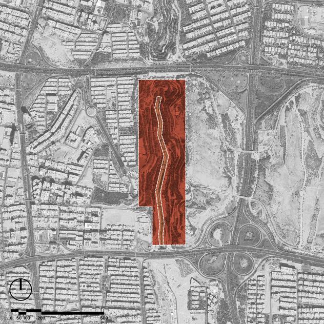 Site nestled in a valley, contours every 10 meters—inspiring dynamic design for a futuristic urban park.