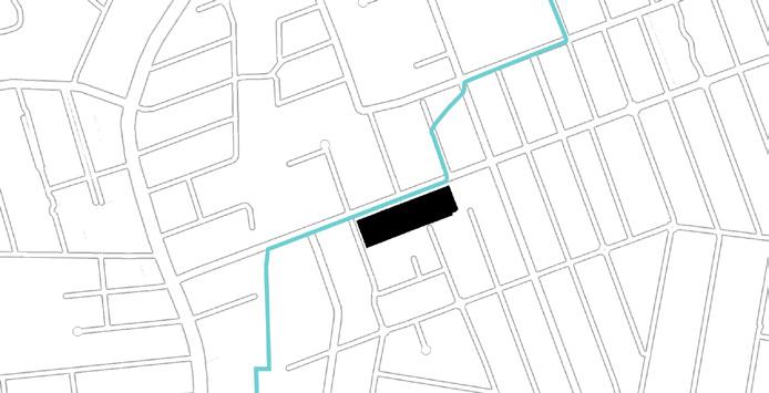 building restrictions on each side, informing design decisions for riverfront integration.