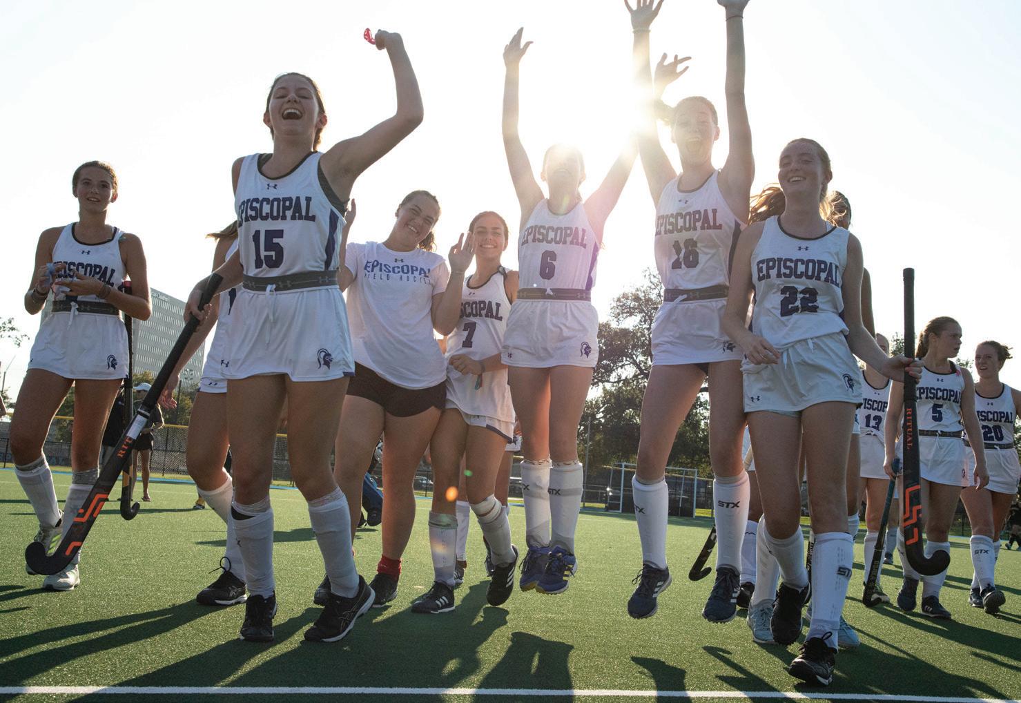 Varsity field hockey celebrates a September 8 win against St. Agnes Acade my. Photo by Lila Henningsen.