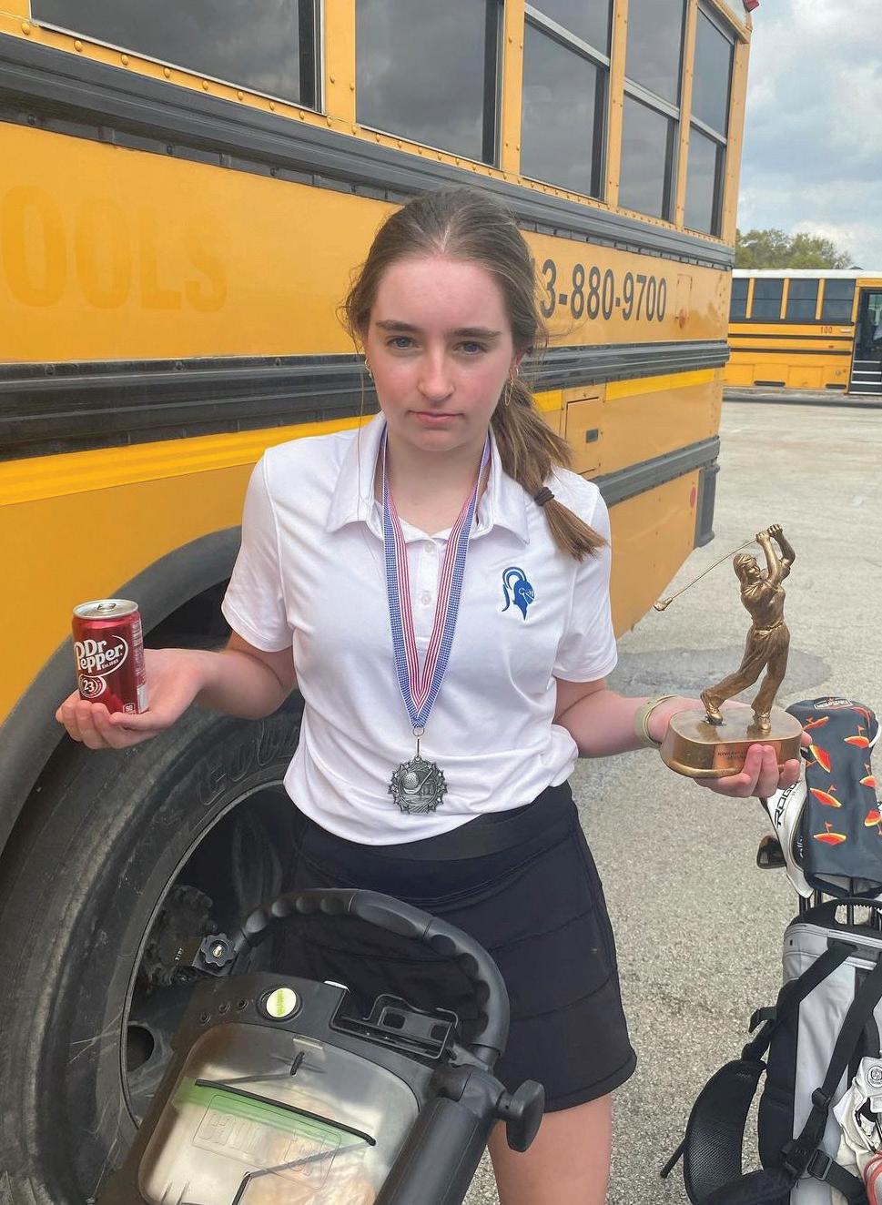 Senior Paige Champion celebrates her win with a Dr. Pepper. Photo courtesy of Lily O’Gorman.