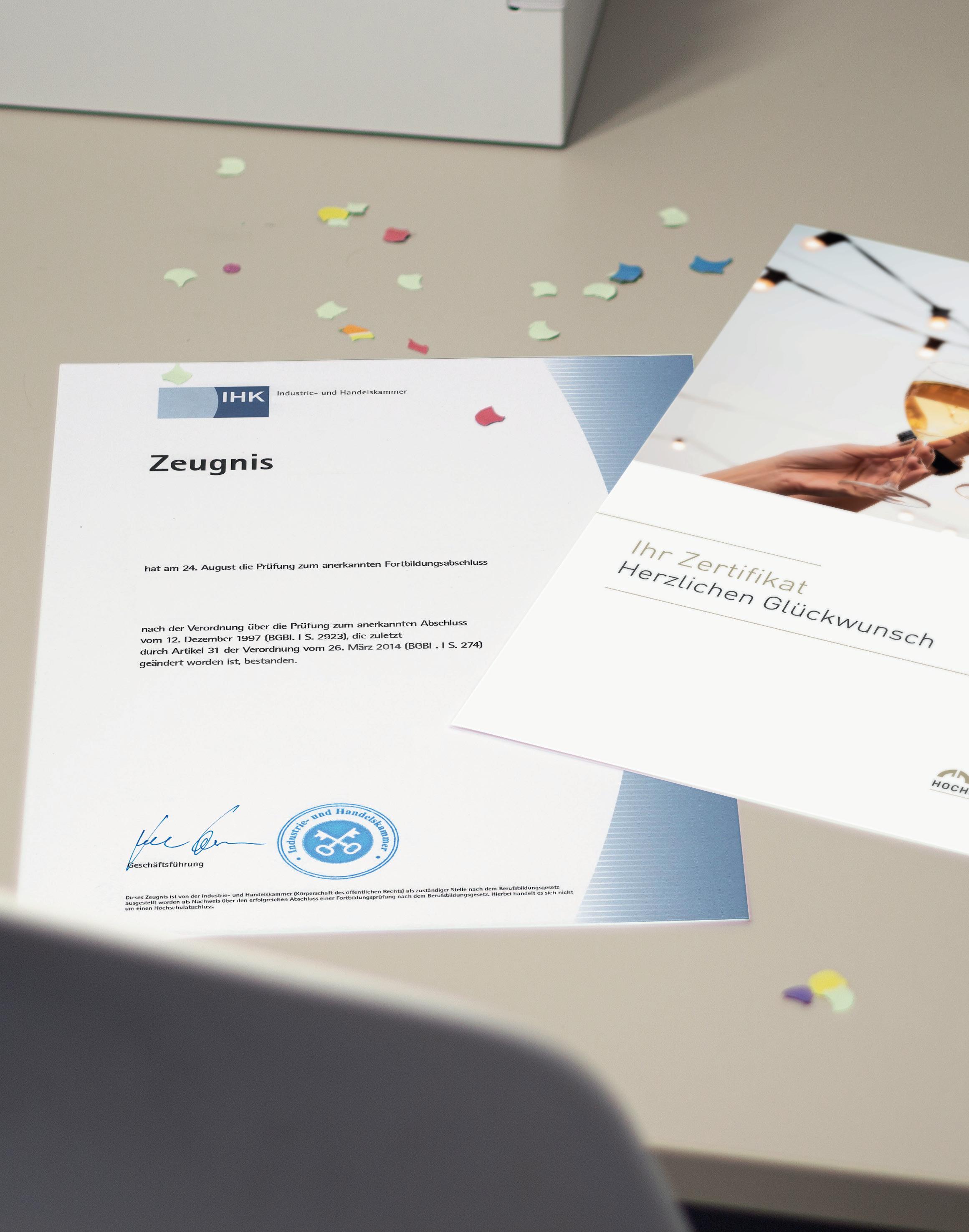 Nach Bestehen der IHK-Prüfung erhälst Du den Ausbilderschein nach AEVO