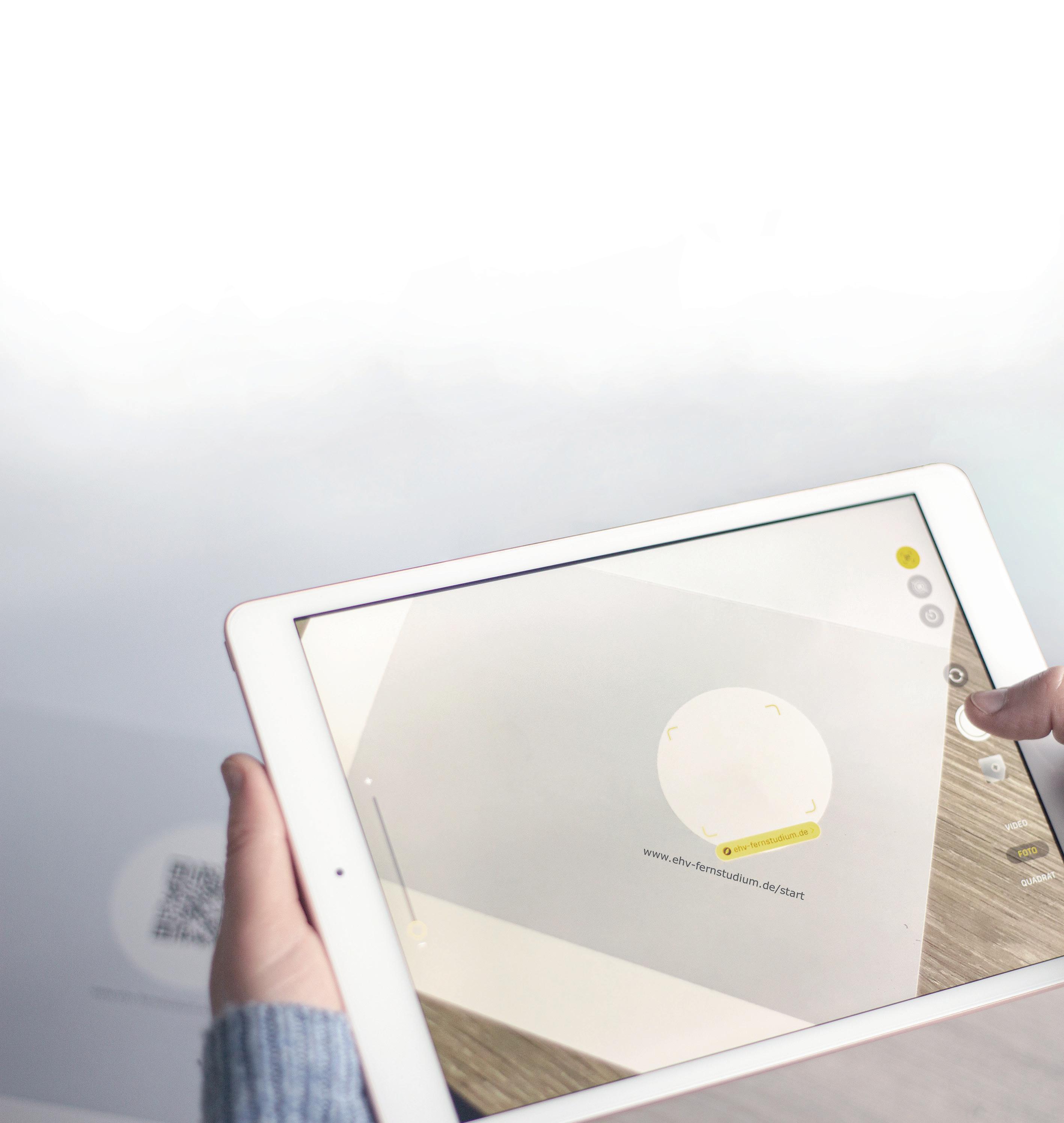 Nutze unsere Online-Anmeldung und melde Dich noch heute an. Besuche hierfür unsere Website www.ehv-fernstudium.de oder scanne den unten stehenden QR-Code mit Deinem Smartphone oder Tablet. Du kannst uns Deine Anmeldung auch gerne per E-Mail oder Post zukommen lassen. Verwende dazu das beigelegte Formular.