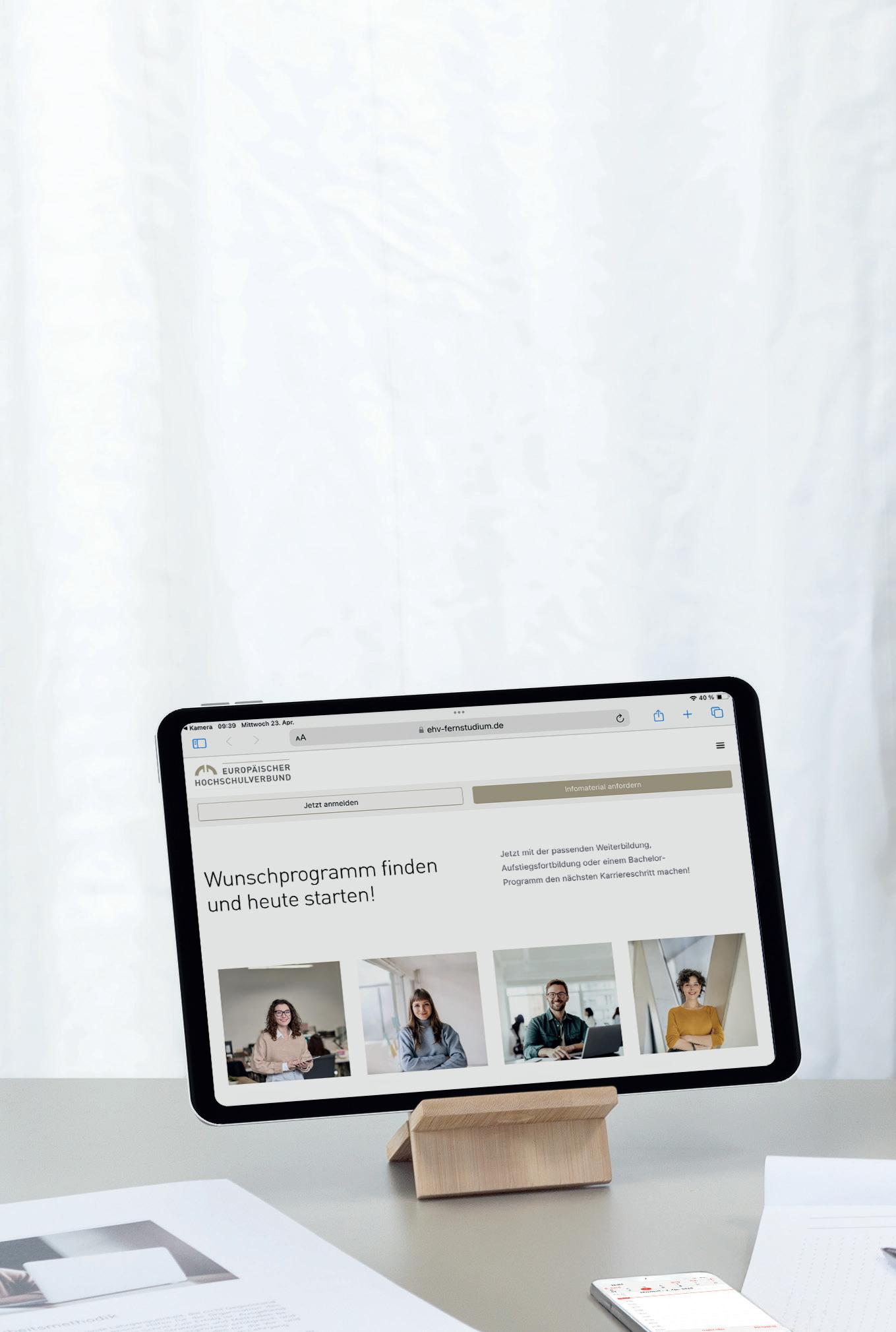 EHV-liveC@MPUS – so haben wir unser innovatives E-Learning-System genannt, das Dich in Deiner Weiterbildung auf vielfache Weise unterstützt. Während der gesamten Aufstiegsfortbildung hast Du kostenfreien, umfassenden Zugriff auf unsere Lernplattform. Über diese kannst Du Dich mit den anderen Teilnehmer*innen der Weiterbildung vernetzen, gemeinsam lernen und mobil alle relevanten Informationen einsehen. Mit dem bereitgestellten iPad bist Du optimal vorbereitet und organisierst Dich per Fingertipp. Dein Studium hast Du immer dabei!