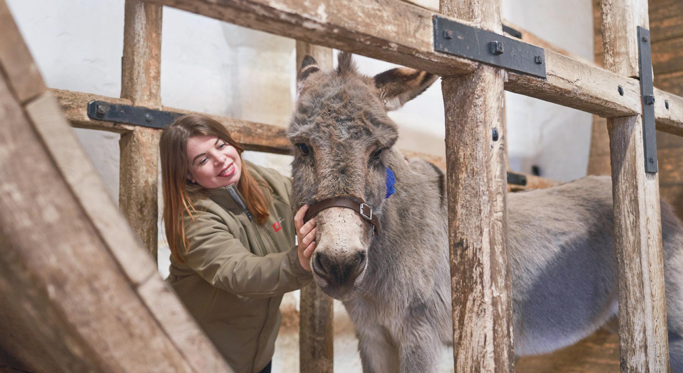 Donkeys have been a familiar sight at Carisbrooke Castle on the Isle of Wight for hundreds of years. They were used to raise buckets of water from the well, via the huge oak wheel built in the 1580s, and you can still see donkeys demonstrating this today.