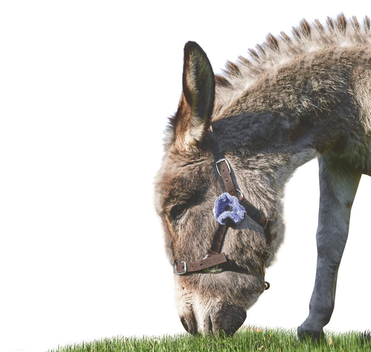 a major feature. As well as continually clearing the stables and field, the team also get involved with grooming coats, picking out feet and generally keeping an eye on their welfare, making sure that everything is as it should be. ‘I love volunteering with Getting to them, the cuddles are the know their best, and getting to know their personalities is very personalities entertaining,’ says Helen. is very When asked who her favourite donkey was, she entertaining compared it to choosing a favourite child. However, if she absolutely had to pick, Helen’s favourite would be Jill, who, whilst small, is unquestionably the head of the herd and a fine example of a powerful female.