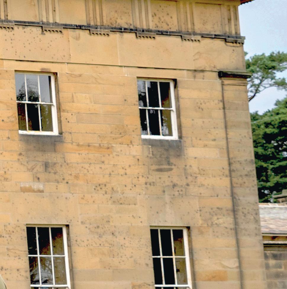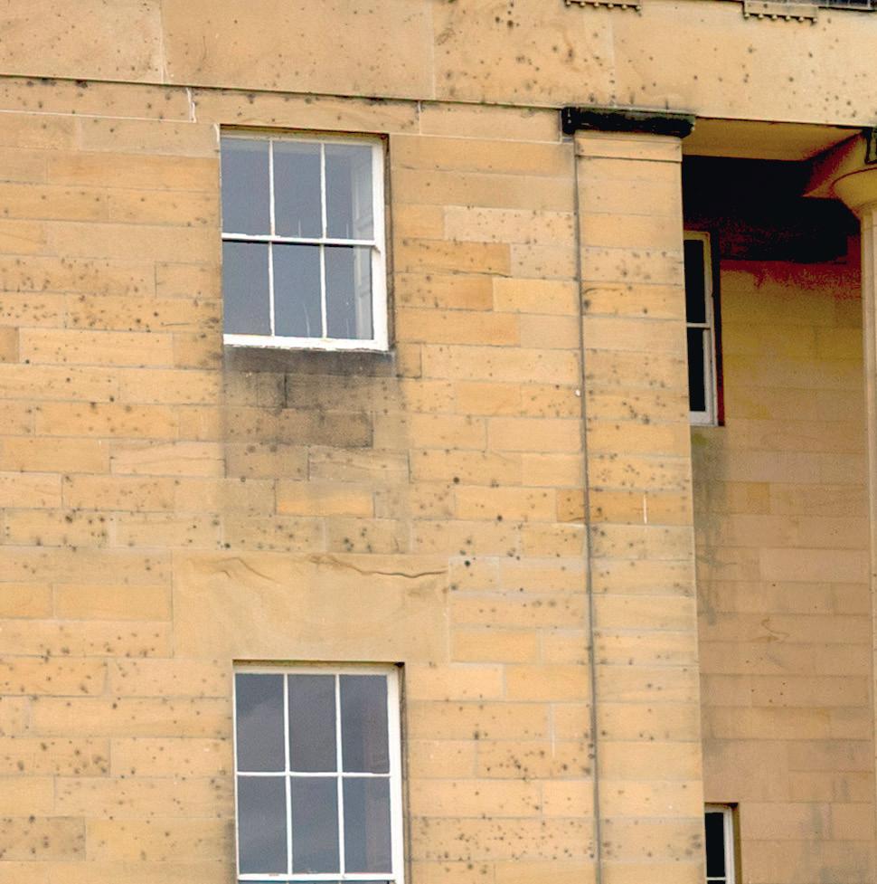 Examples of defects that might be a cause or a symptom of loose masonry are highlighted during the tour and they can include open joints and cracking, unsupported or corbelled masonry blocks, vegetation establishing at high level, delaminating or peeling surfaces, any change around openings such as doors and windows, or fresh-coloured stone which might indicate a recent fall.