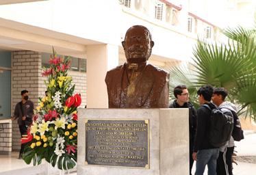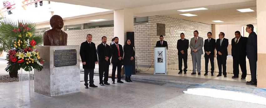 El evento se realizó frente al busto del General en la Unidad Monterrey I, se contó con la presencia de los Coordinadores de Unidad, quienes acompañaron a nuestro Director el Ing. Jesús Leos Pérez, así como directivos de nuestra institución, alumnos representantes, el grupo de Artes Musicales y padres de familia.
