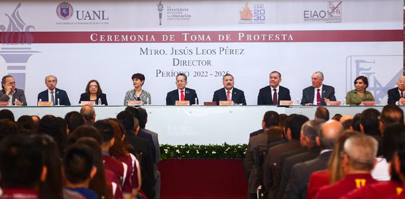 Fue testigo de este acto protocolario el Rector de la UANL, el Dr. med. Santos Guzmán López, así como miembros de la Honorable Junta de Gobierno, encabezada por su presidente, el Dr. Benjamín Limón Rodríguez. Durante la toma de protesta, el Mtro. Jesús Leos Pérez expresó unas