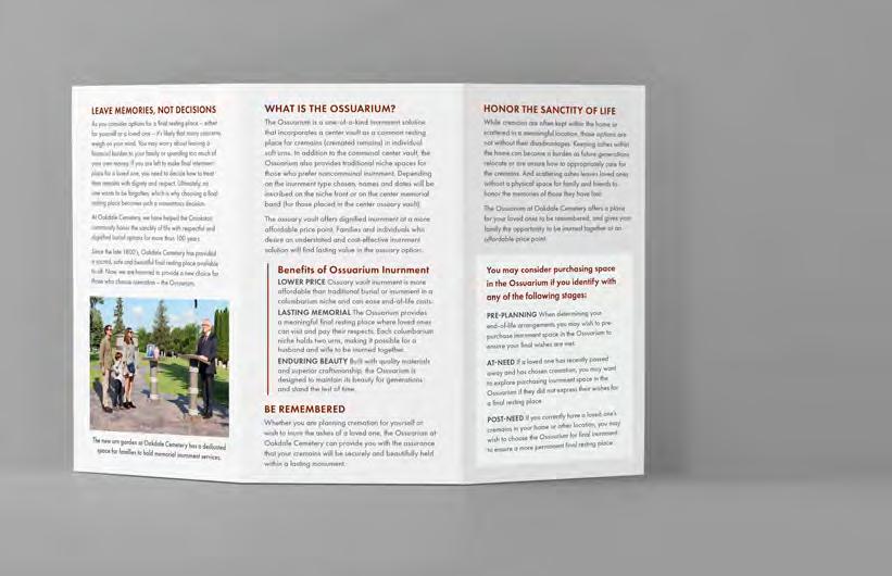 Add more memorial spaces with ease. The Memorial Band honors those placed in the ossuary. This can provide families with a more cost-effective memorial option. View page 58 to learn more about the ossuary option.