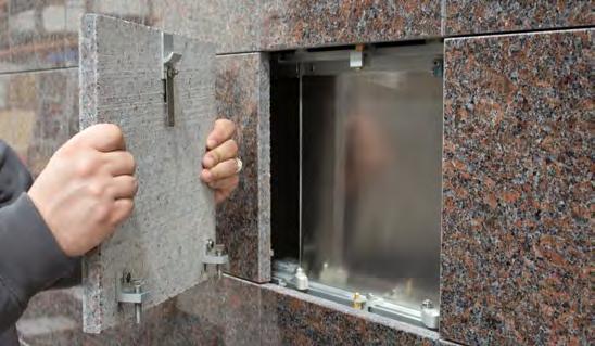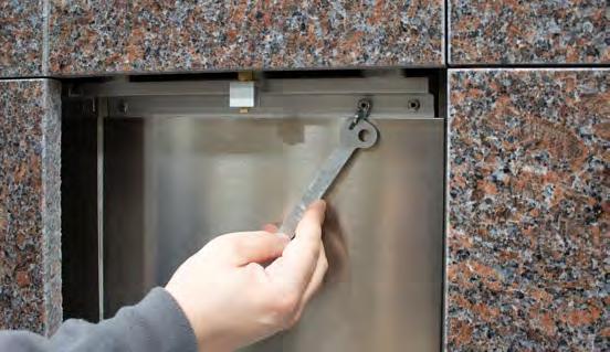 Eickhof’s concealed locking hardware system offers an aesthetically pleasing appearance and requires minimal future maintenance. Access to the niches requires the Eickhof key wrench which provides security for families memorializing their loved ones.